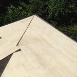- 施工中 コンパネをはり、ルーフィングしていきます。