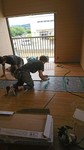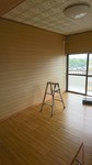 東洋テックのフローリングに張替え中。二階の部屋なので遮音シートをはりました。