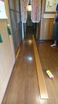 老朽化したフローリングの上に新しいフローリングを張って行きます。