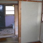 鞍手郡小竹町:タイル張りの浴槽が大きな鏡で広いバスルームに 脱衣所も工事