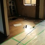 リビングとつながっている部屋の間仕切りと柱の撤去しました。 それに伴い補強工事もしました。