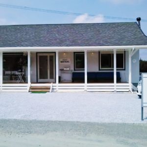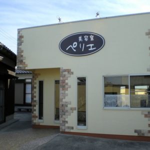 5. 遠賀郡芦屋町でクリーム色のスクエア型がかわいい外観 明るく心地よい美容室お施主をイメージ