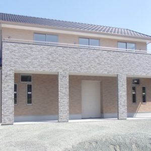 2. 福岡県北九州市 店舗兼住宅中央に玄関を配置し左側は店舗、右側は住宅となっています。セルロース断熱材を使用していますので高い防火性能、防音、夏は涼しく冬は暖かに快適に過ごせます。 屋根裏部屋を二部屋作り収納がたくさん出来るようにしました。