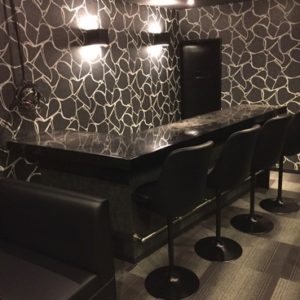 9. 北九州市 黒崎 三角公園近くの空き家ビルを全面改装!12月1日オープンです。床は絨毯貼りにし、広々としたシックで落ち着いた高級感ある雰囲気のお店に仕上がりました。カウンター、チェアーもブラックでかっこいいです! 1Fには無料案内所をつくりました。