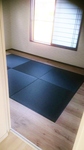 一階リビング横に続く和室です。中央にブラックの畳を敷きモダンなお部屋になりました。